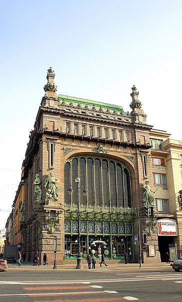 Магазин в Санкт-Петербурге стал вторым после Московского и был построен на углу Невского проспекта и Малой Садовой улицы в 1903 году. Его отличие от московского состояло в ещё большей пышности убранства здания, на фасадах которого были помещены аллегорические скульптуры: «Промышленность», «Торговля», «Искусство» и «Наука». В 2010 году это здание вошло в федеральный список особо охраняемых объектов.